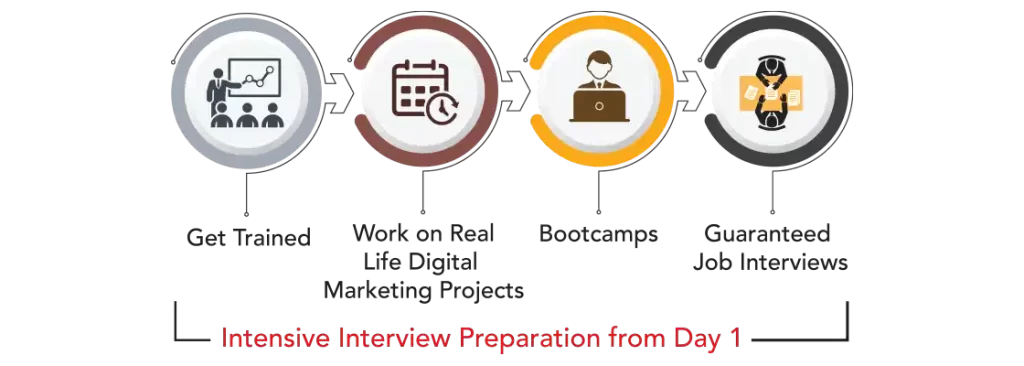 Enroll in India’s leading digital marketing certification course, which follows a curriculum that aligns with the latest industry trends, learn from experts who possess extensive real-world experience, and receive guaranteed job interviews* with our network of 5000+ hiring partners until you land your dream job.